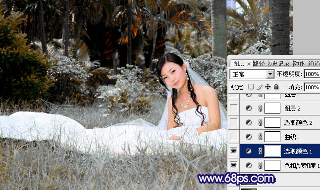 Photoshop调出外景婚片斑斓的暗蓝色(3)