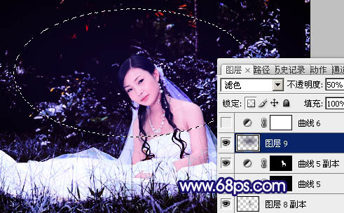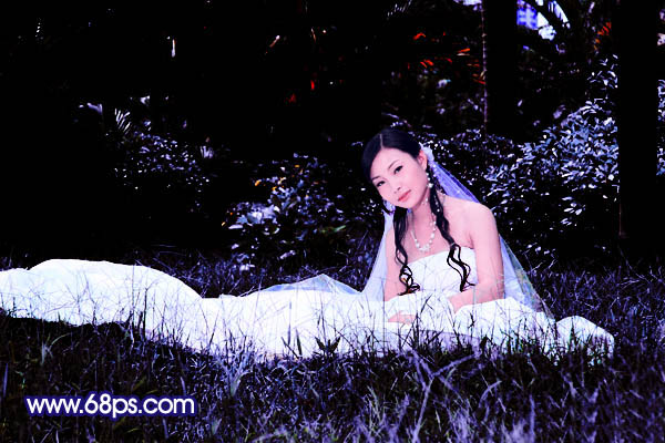 Photoshop调出外景婚片斑斓的暗蓝色(8)