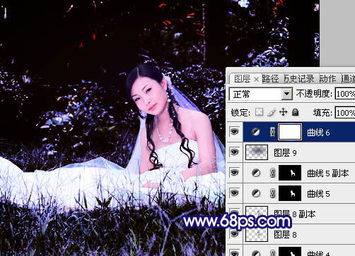 Photoshop调出外景婚片斑斓的暗蓝色(9)