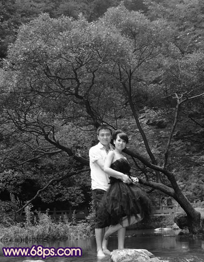 1、打开原图素材,按Ctrl + J 把背景图层复制一层,得到“图层1”,按Ctrl + Shift + U 去色,效果如下图。