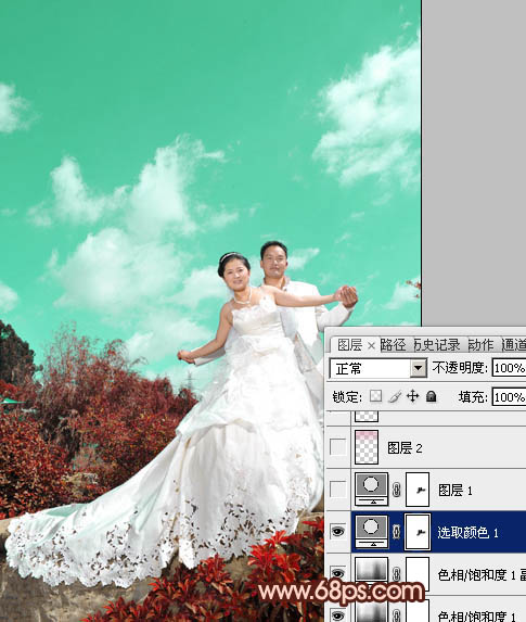 2、按Ctrl + J 把当前色相/饱和度调整图层复制一层,效果如下图。
