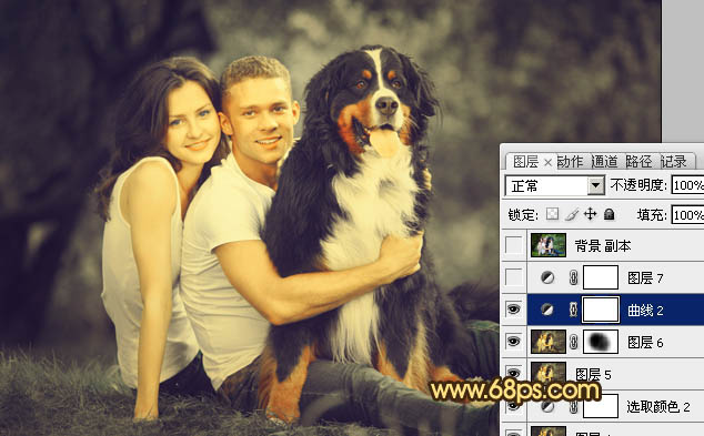 Photoshop调出外景情侣图片温馨的黄褐色(10)