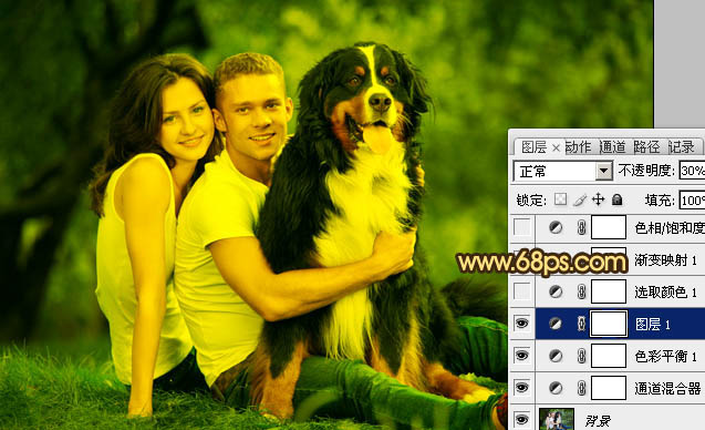 Photoshop调出外景情侣图片温馨的黄褐色(3)