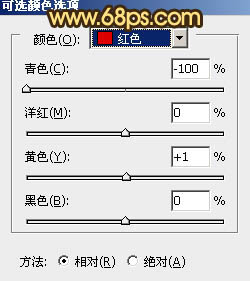 4、创建可选颜色调整图层,对红、黄、绿进行调整,参数设置如图7 - 9,确定后把图层不透明度改为:60%,效果如图10。