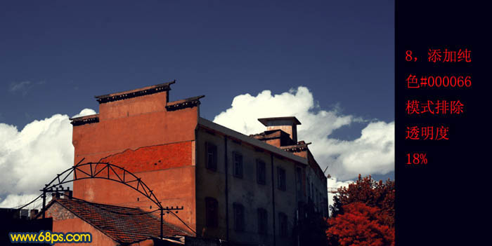 8、新建一个图层,填充颜色:#000066,混合模式改为“排除”,不透明度改为:18%,效果如下图。
