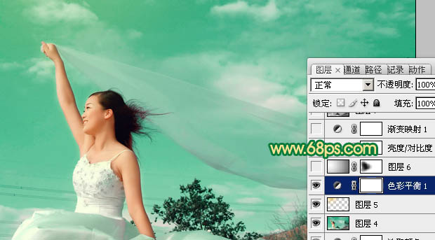 Photoshop调出外景人物图片清爽的青绿色(7)