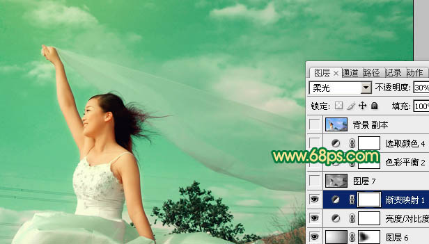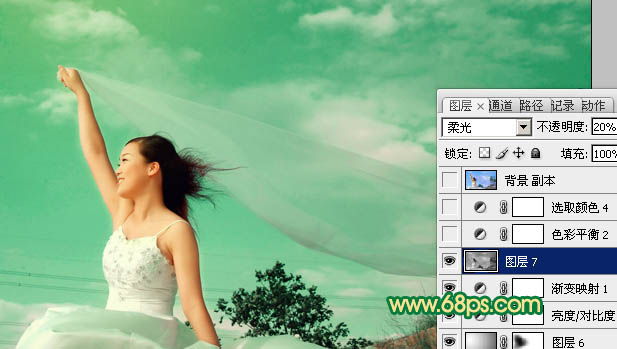 Photoshop调出外景人物图片清爽的青绿色(8)