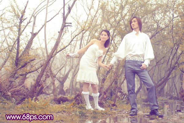 Photoshop调出树林人物图片淡淡的橙色调(7)