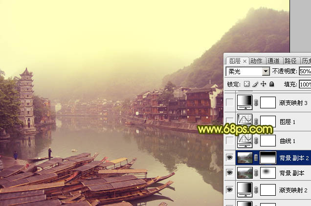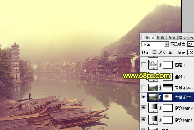 Photoshop给江畔小镇添加绚丽的朝霞色(3)