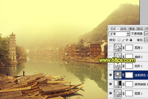 Photoshop给江畔小镇添加绚丽的朝霞色(6)