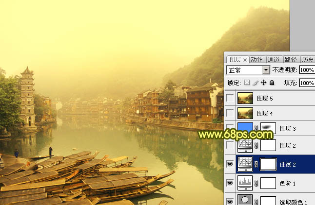 Photoshop给江畔小镇添加绚丽的朝霞色(7)