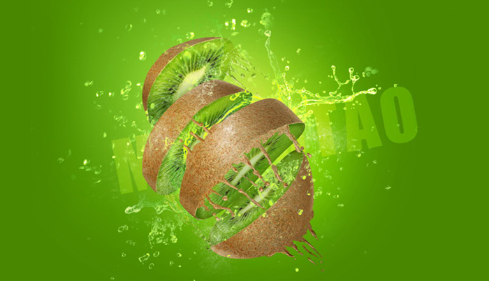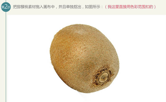 2、把猕猴桃素材拖入画布中,并且单独抠出,如图所示。