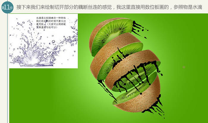 11、接下来我们来绘制切开部分的藕断丝连的感觉,我这里直接用数位板画的,参照物是水滴。