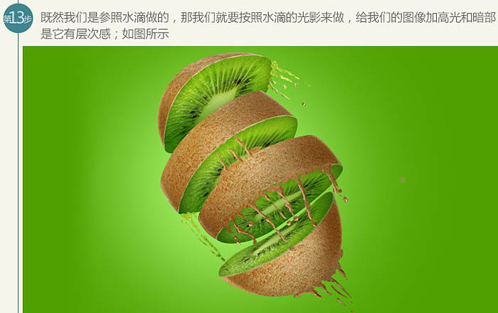 13、既然我们是参照水滴做的,那我们就要按照水滴的光影来做,给我们的图像加高光和暗部,使它有层次感,如图所示。