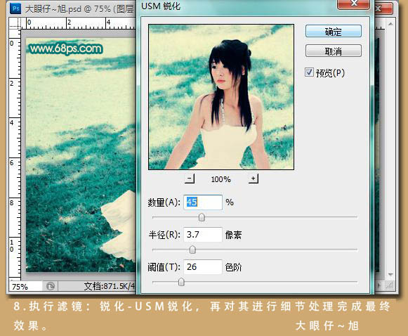 8、新建一个图层,盖印图层。执行:滤镜 > 锐化 > USM锐化,参数设置如下图。