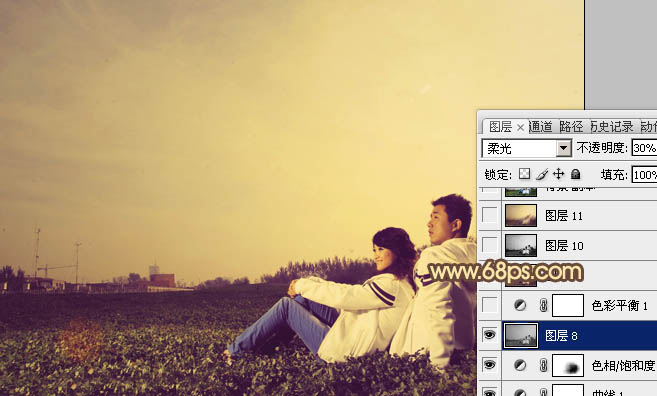 Photoshop调出外景情侣图片柔和的紫黄色(7)