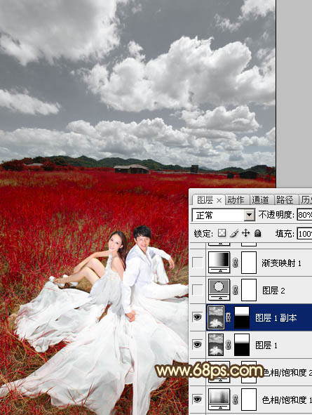 3、把当前图层复制一层,混合模式改为“正常”,不透明度改为:80%,效果如下图。