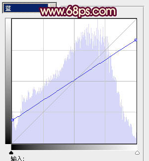 4、创建曲线调整图层,对蓝色进行调整,参数设置如图8,确定后把图层不透明度改为:60%,效果如图9。