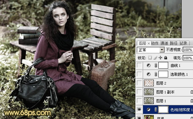 1、打开原图素材,创建色相/饱和度调整图层,参数设置如图1,效果如图2。