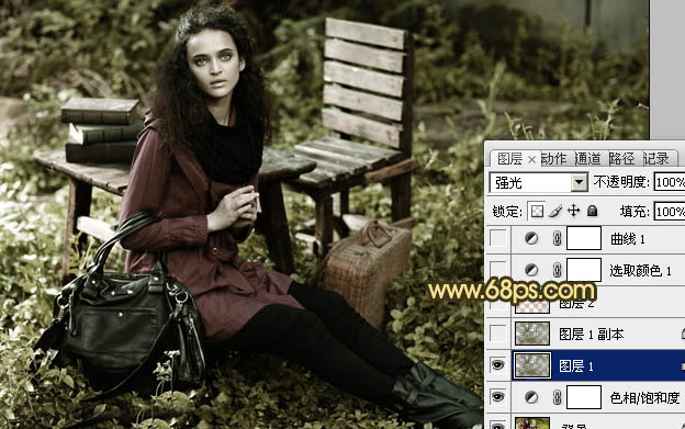 2、按Ctrl + Alt + ~ 调出高光选区,按Ctrl + Shift + I 反选,新建一个图层填充颜色:#63613B,图层混合模式改为“强光”,效果如图3。