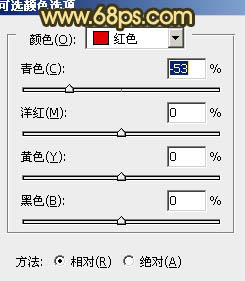 8、创建可选颜色调整图层,对红色进行调整,参数设置如图13,效果如图14。