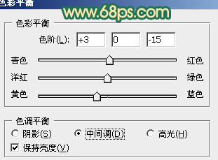 5、创建色彩平衡调整图层,对中间调进行调整,参数设置如图10,效果如图11。