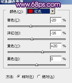 7、创建可选颜色调整图层,对红色及中性色进行调整,参数设置如图12,13,效果如图14。
