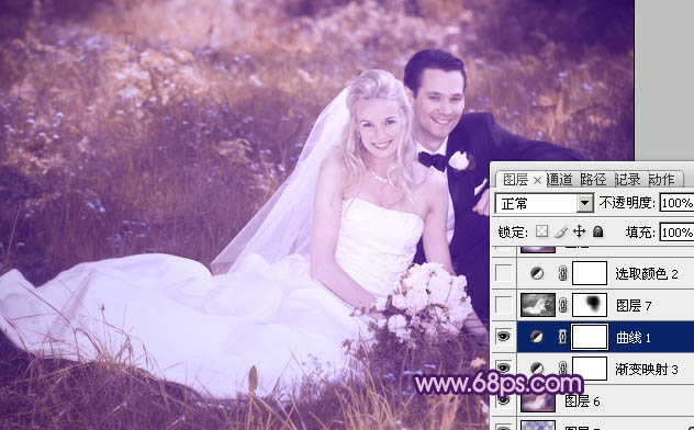 Photoshop调出外景婚片淡淡的紫红色(9)