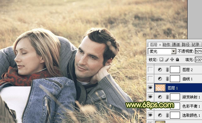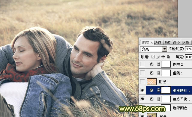Photoshop调出外景情侣图片古典暗调黄绿色(4)