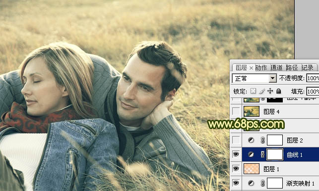 Photoshop调出外景情侣图片古典暗调黄绿色(5)