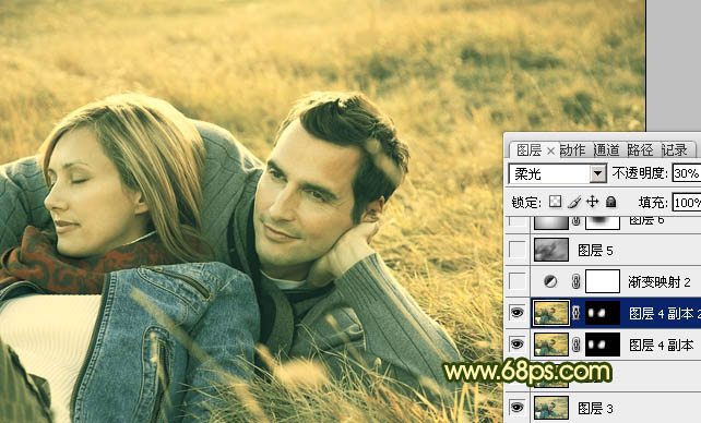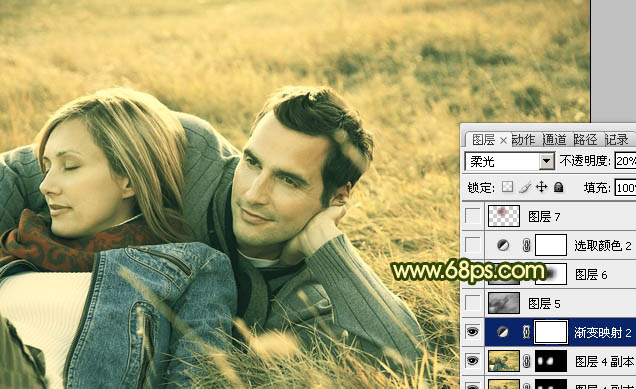 Photoshop调出外景情侣图片古典暗调黄绿色(7)