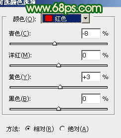 5、创建可选颜色调整图层,对红,绿进行调整,参数设置如图10,11,效果如图12。