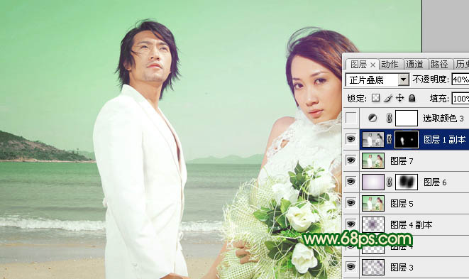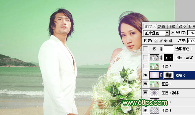 Photoshop打造甜美的青色海景婚片(7)