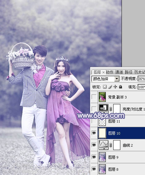 Photoshop调出外景人物图片淡淡的蓝紫色(10)