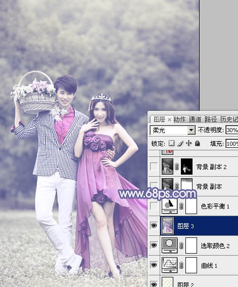 Photoshop调出外景人物图片淡淡的蓝紫色(5)