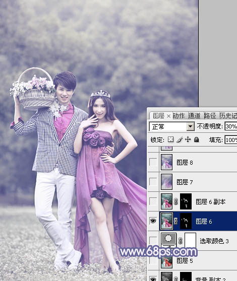 Photoshop调出外景人物图片淡淡的蓝紫色(8)