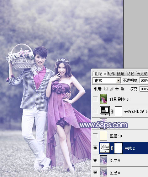 Photoshop调出外景人物图片淡淡的蓝紫色(9)