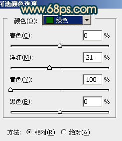 2、创建可选颜色调整图层,对红、黄、绿进行调整,参数设置如图2 - 4,效果如图5。