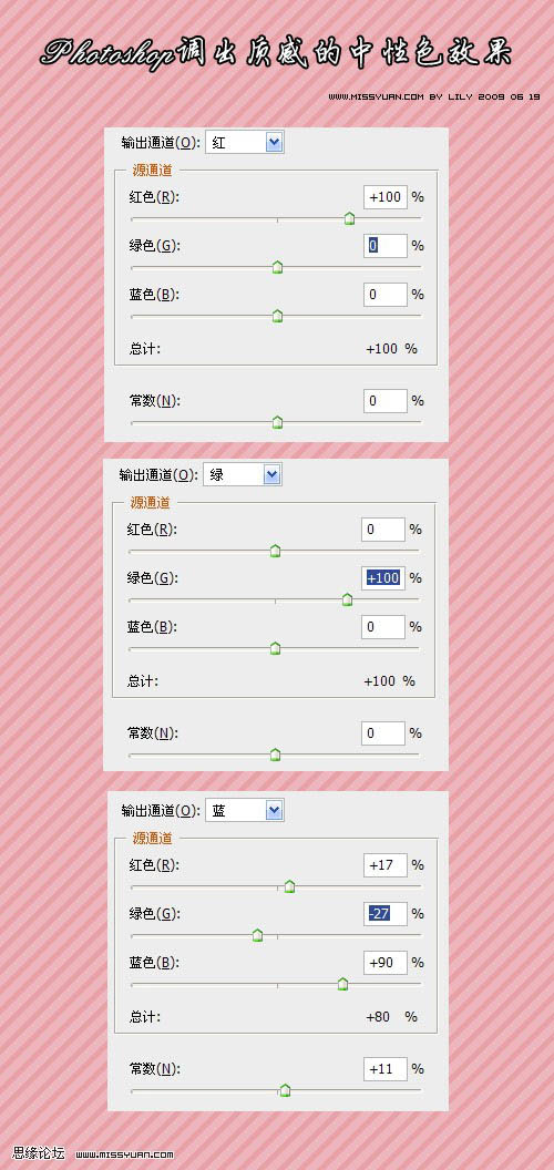3、盖印图层得到图层2,建立通道混合器层,参数如下: