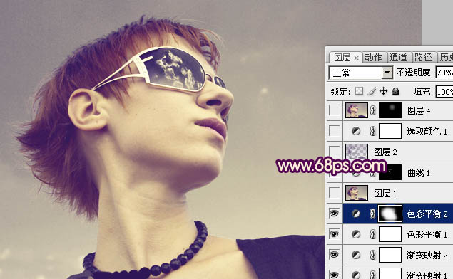 Photoshop调出外景人物图片个性的橙紫色(4)