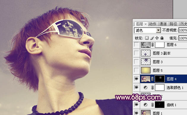8、新建一个图层,按Ctrl + Alt + Shift + E 盖印图层。图层混合模式改为“滤色”,按住Alt 键添加图层蒙版,用白色画笔把人物鼻子周围涂亮一点。