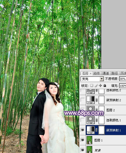 Photoshop调出竹林人物图片柔和的蓝紫色(2)