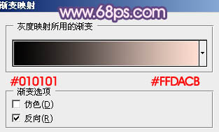3、创建渐变映射调整图层,颜色设置如图6,确定后把图层混合模式改为“变亮”,效果如图7。