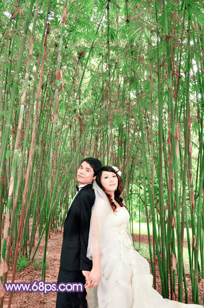 Photoshop调出竹林人物图片柔和的蓝紫色(3)