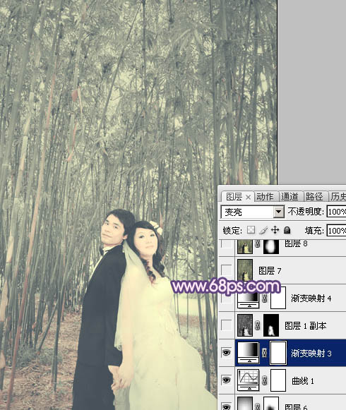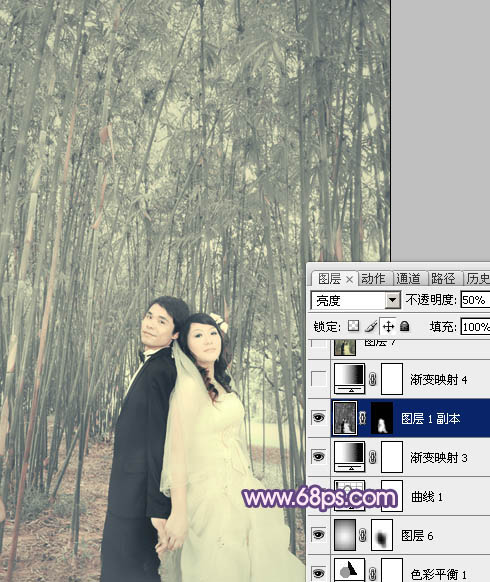 Photoshop调出竹林人物图片柔和的蓝紫色(6)