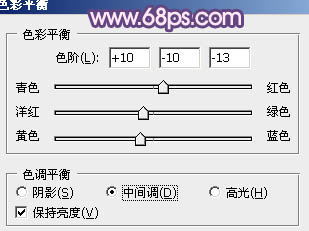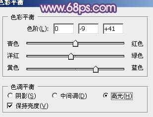 14、创建色彩平衡调整图层,对中间调,高光进行调整,参数设置如图24,25,效果如图26。