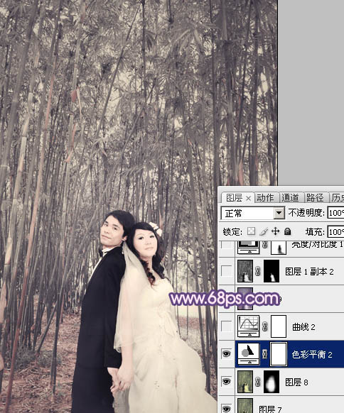 Photoshop调出竹林人物图片柔和的蓝紫色(8)