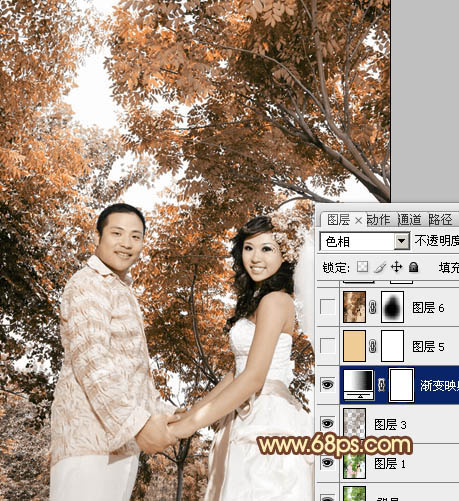 Photoshop调出外景婚片柔美的古典黄褐色(2)