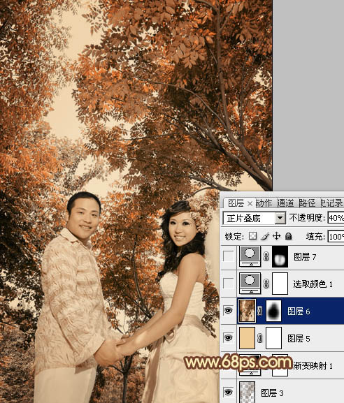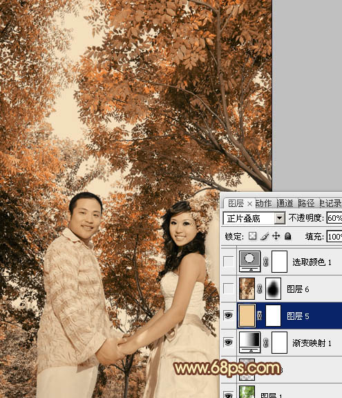 Photoshop调出外景婚片柔美的古典黄褐色(3)
