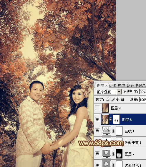 Photoshop调出外景婚片柔美的古典黄褐色(7)
